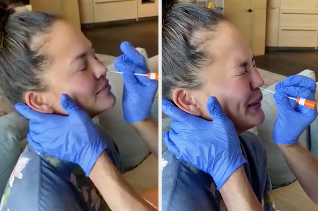 Chrissy Teigen Posted A Video Of Her Coronavirus Test On Twitter, If You're Curious What It Looks Like